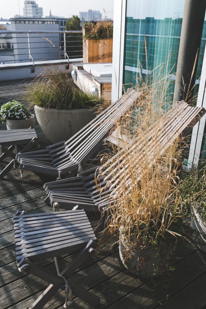 Während meiner Zeit in Berlin bewohnte ich das Zimmer „Unser Lieblingsplatz“, das nicht nur mit zwei Glasfronten überzeugte, sondern auch noch eine riesige Dachterrasse zu bieten hat. Das Zimmer an sich ist sehr gemütlich gewesen und ich habe mich sofort wie zu Hause gefühlt. Das ist mir unterwegs sehr wichtig, wenn ich ein Hotelzimmer beziehe, dann reist der Wohlfühlfaktor immer mit. Ein absoluter Pluspunkt bei zwei großen Glasfronten ist, dass man sich morgens ganz gemütlich von der Sonne wecken lassen kann. So startet man einfach viel entspannter in den Tag! Ich liebe es, wenn mir die Sonne an der Nase kitzelt und ich ganz gemütlich aus dem Bett fallen kann.