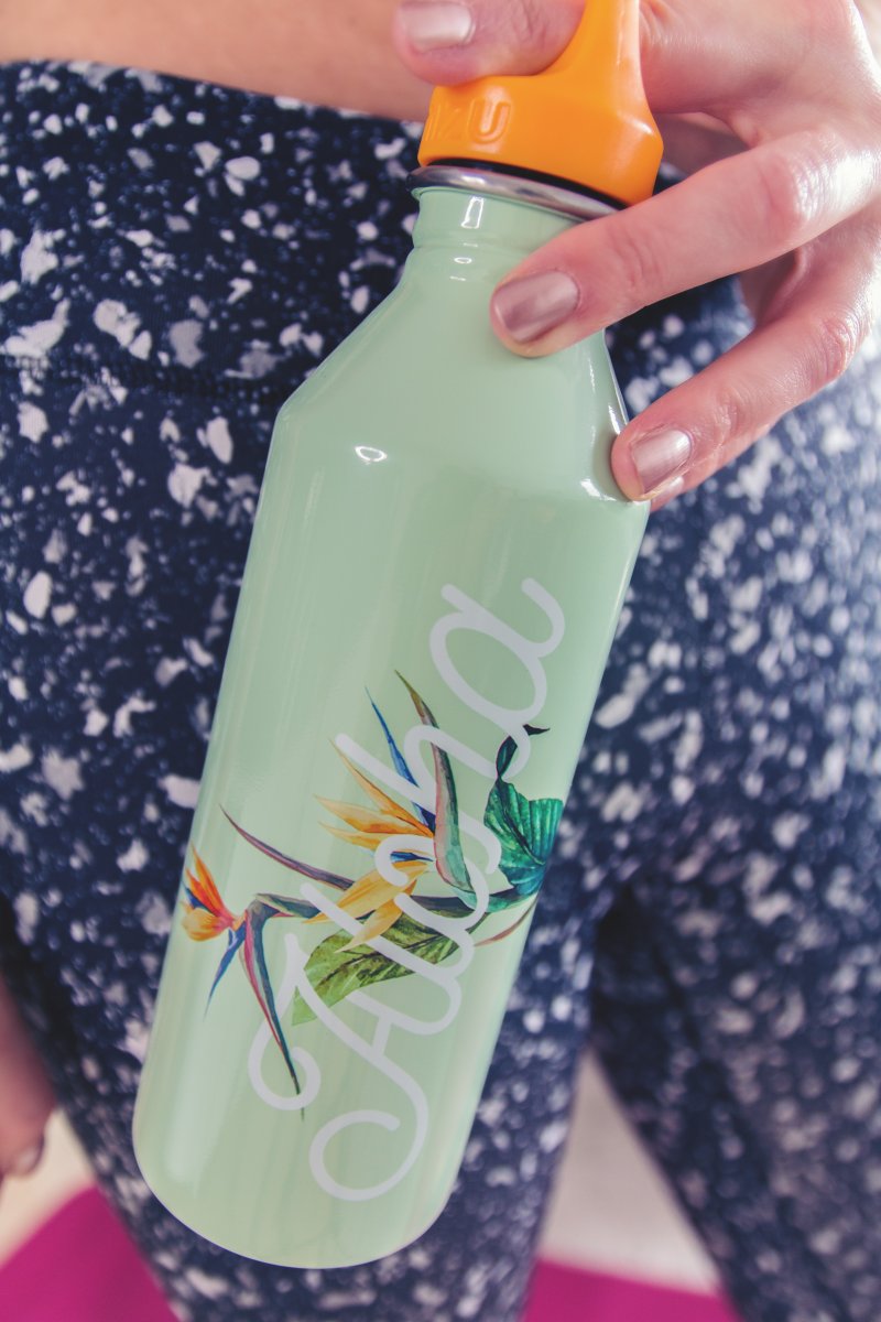 Aber auch das richtige Outfit gehört für mich zu einer Yoga Session dazu. Ein Label, das ich in diesem Zusammenhang nur empfehlen kann, ist Hey Honey. Das Oberteil geht in jeder Bewegung mit und schmiegt sich angenehm an den Körper an. Genauso wichtig ist die richtige Yoga Matte. Und natürlich darf wie bei jedem Sport, auch ausreichend trinken nicht fehlen. Ich benutze dafür eine Trinkflasche von Mizu die aus Stahl ist und nicht nur gut aussieht, sondern auch die Umwelt schont.
