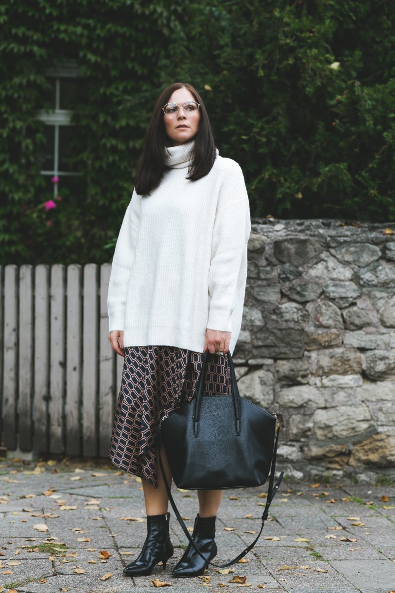 Herbst Outfit mit Strickpullover und Wickelrock