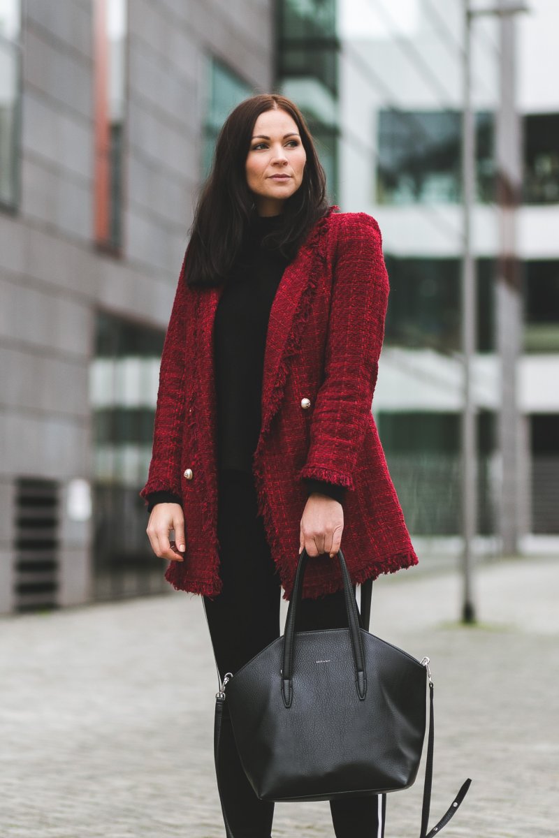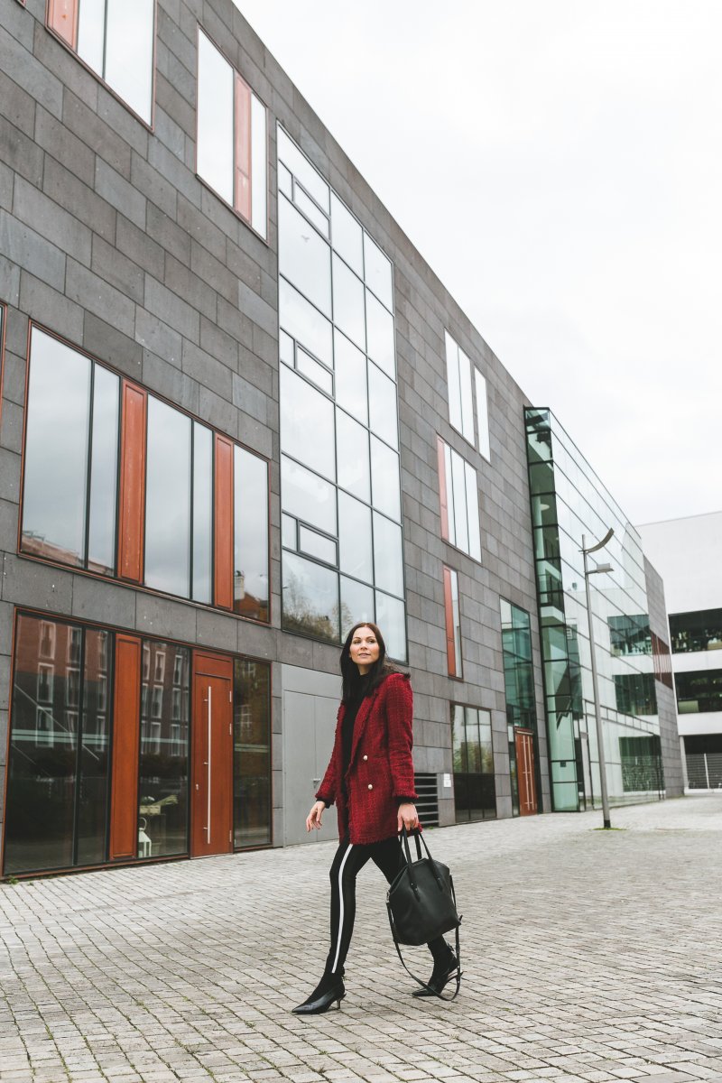 Sportlich aber schick – unter diesem Motto steht mein heutiges Herbst Outfit hier auf dem Modeblog. Ich kombiniere einen eleganten Tweedblazer zu einer sportlichen Leggings mit Streifendetails. Ein Look, an den ich mich im Alltag durchaus gewöhnen könnte, denn er ist superbequem und wirkt durch seine interessanten Details alles andere als langweilig.