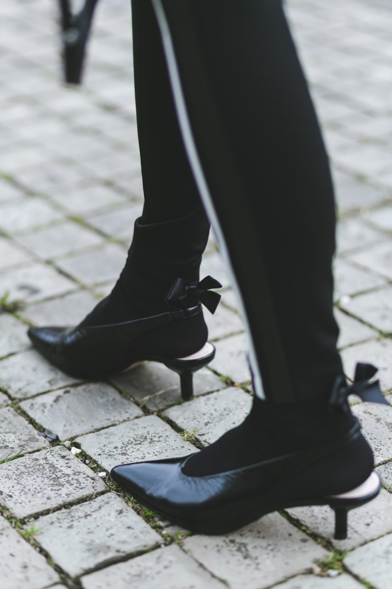 An den Füßen setzte ich auf pure Eleganz und trage schwarze Söckchen mit verspielten Schleifen von Calzedonia. Ich bin ganz entzückt von diesen süßen Details, die durch die Midipumps perfekt zur Geltung kommen. Wieder mit dabei ist meine Alltagstasche von Matt & Nat. Diese Tasche bietet einfach superviel Stauraum für das, was im Alltag seinen Platz finden muss. Ich liebe diese Tasche für ihren minimalistischen Stil, der einfach zeitlos und schlicht ist.