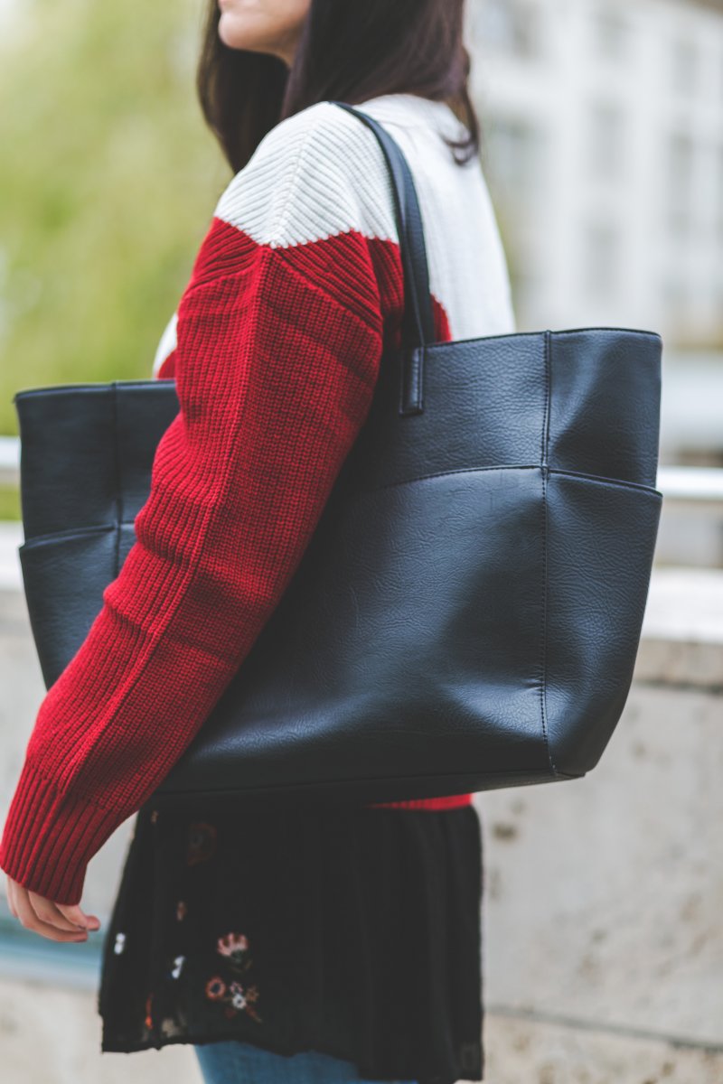 Herbst Outfit mit rotem & Other Stories Pullover und Matt & Nat Bag