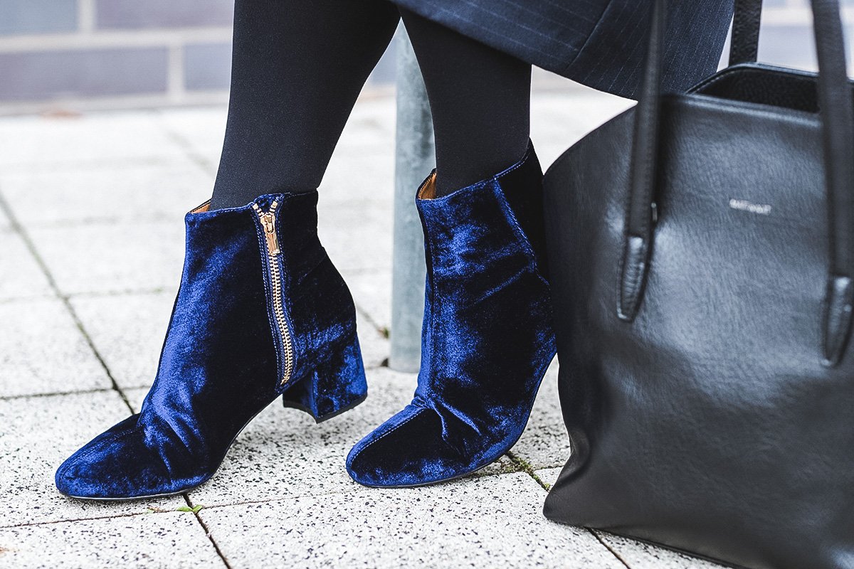 Ein Highlight meines heutigen Looks sind die nachtblauen Samt-Boots von & Other Stories. Sie verleihen den Look nicht nur den letzten Schliff, sondern runden ihn auch noch gekonnt auf eine elegante Weise ab. Zu den Schuhen habe ich einen alten Bekannten kombiniert – meine Matt & Nat Tasche, die ihr schon in unzähligen Look hier auf dem Fashionblog bewundern konntet. Die Tasche ist einfach ein zeitloser Begleiter, der sich für mich im Alltag bewährt hat. Sie trägt sich sowohl zu sportlichen als auch zu eleganten Looks sehr gut aus.
