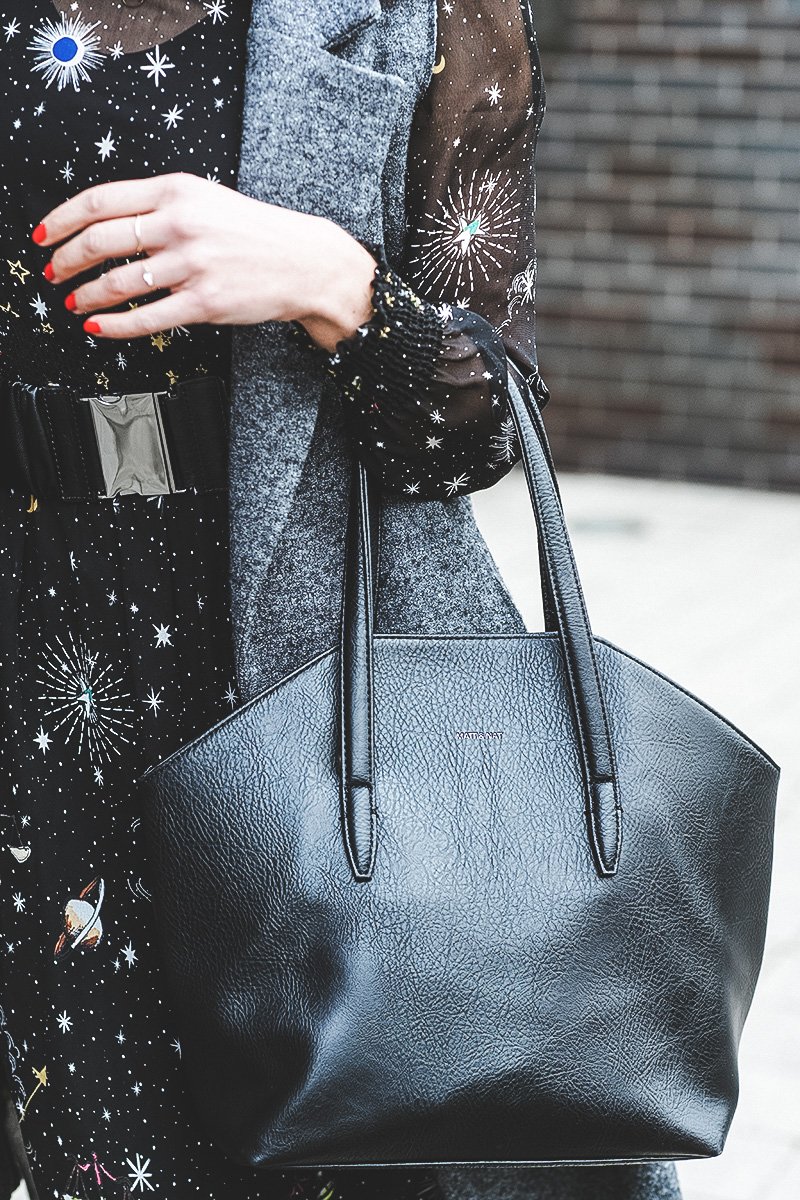 Winter Outfit mit Midikleid und Matt & Nat Baxter Bag