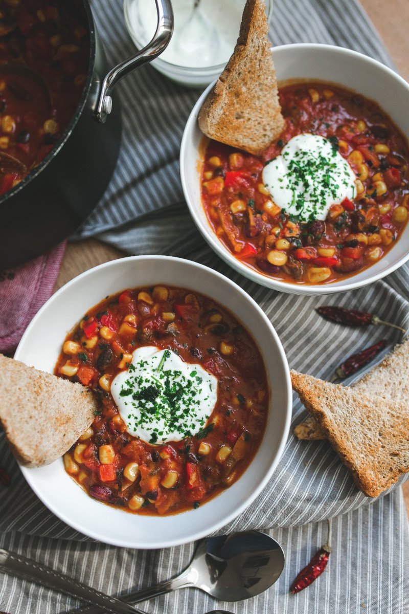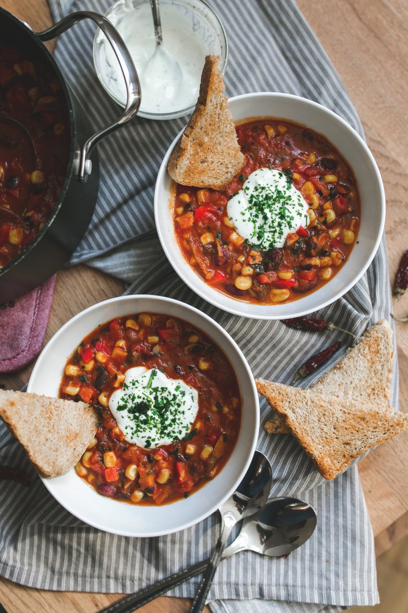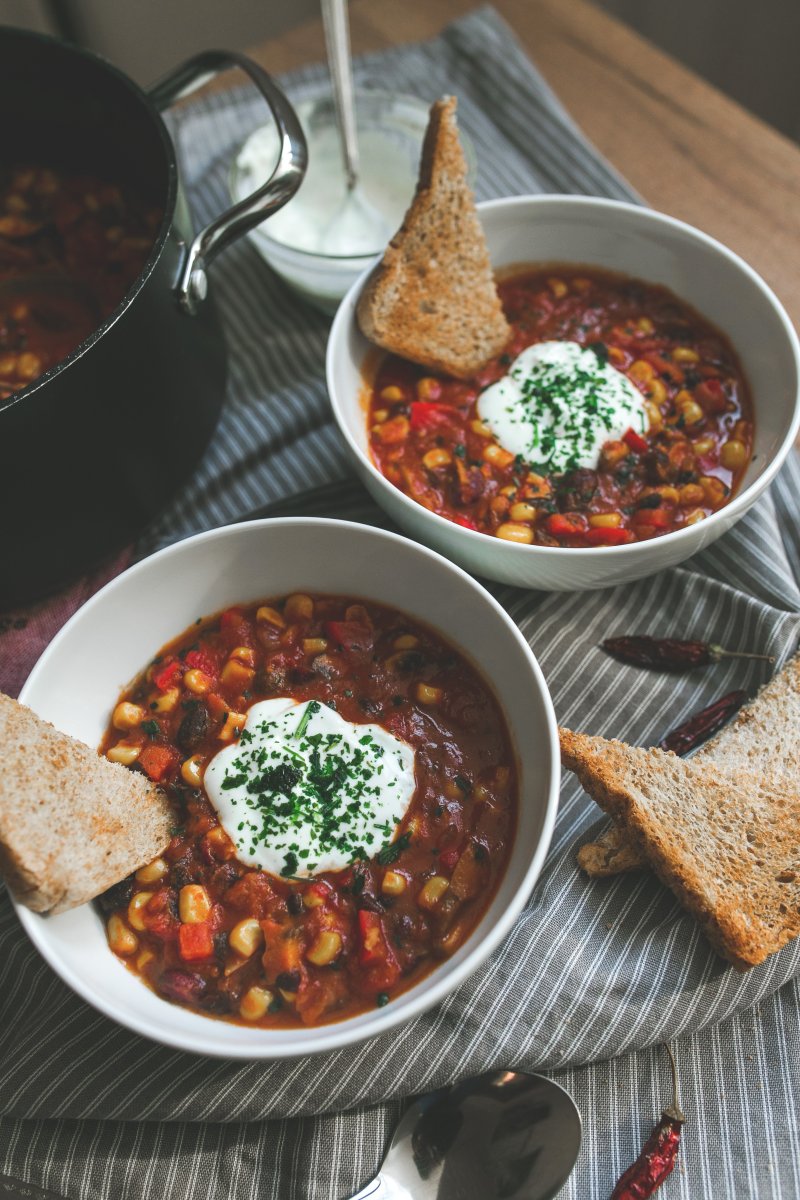 Ich koche für mein Leben gerne. Doch leider bleibt im Alltag nur wenig Zeit für aufwendige vegetarische oder vegane Gerichte. Doch es gibt auch Essen, die sich schnell zubereiten lassen und gesund sind. Genau so eine leckere Mahlzeit möchte ich euch heute auf meinem Foodblog vorstellen. Heute bereiten wir zusammen ein vegetarisches Chili Sin Carne zu, das in ganz unterschiedliche Variationen serviert werden kann. Übrigens dieses Gericht ist auch perfekt als kleiner Snack für eure nächste Party geeignet. Probiert es aus!