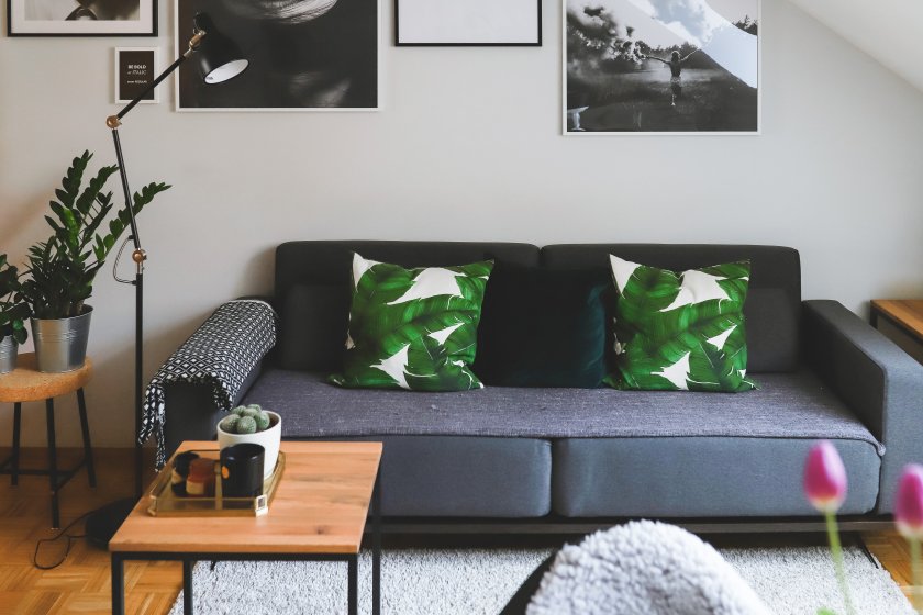 Möbel im Industrial Stil vereinen eine Mischung aus dunklem Holz und Metall. Sie bestechen durch ihre gewollten Gebrauchsspuren, ihre Ecken und Kanten. Mit den passenden Accessoires kannst du den Industrial Stil in verschiedene Richtungen lenken und dir ein Dschungel-, ein Loft- oder ein Boho-Feeling ins eigene Wohnzimmer holen. Hierbei spielen vor allem der richtige Teppich und die passenden Kissen eine wichtige Rolle. Für den Industrial-Dschungel eignet sich zum Beispiel Tropenmuster hervorragend. Hier ein Pouf mit Palmenprint, da ein Kissen in Bananengelb. Zusammen mit den passenden Grünpflanzen lassen die Accessoires den Raum wahrlich erstrahlen.
