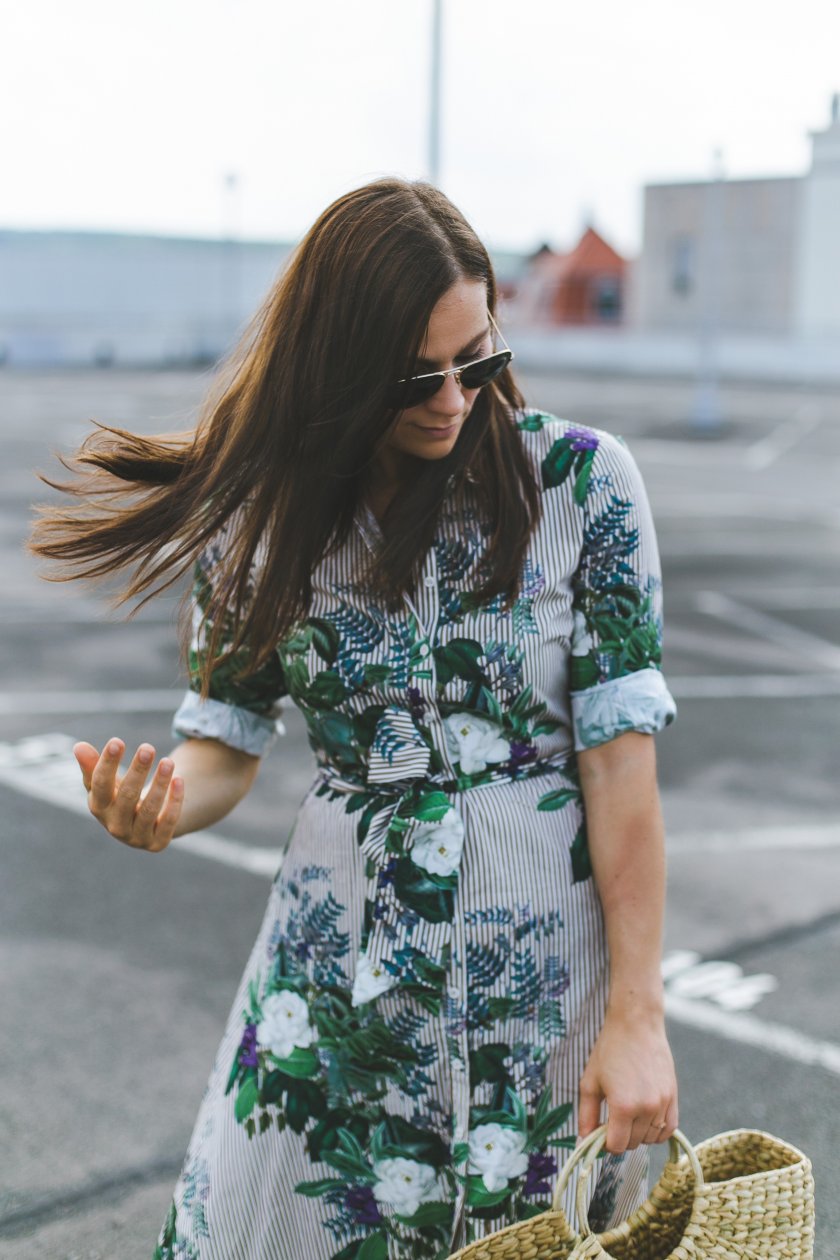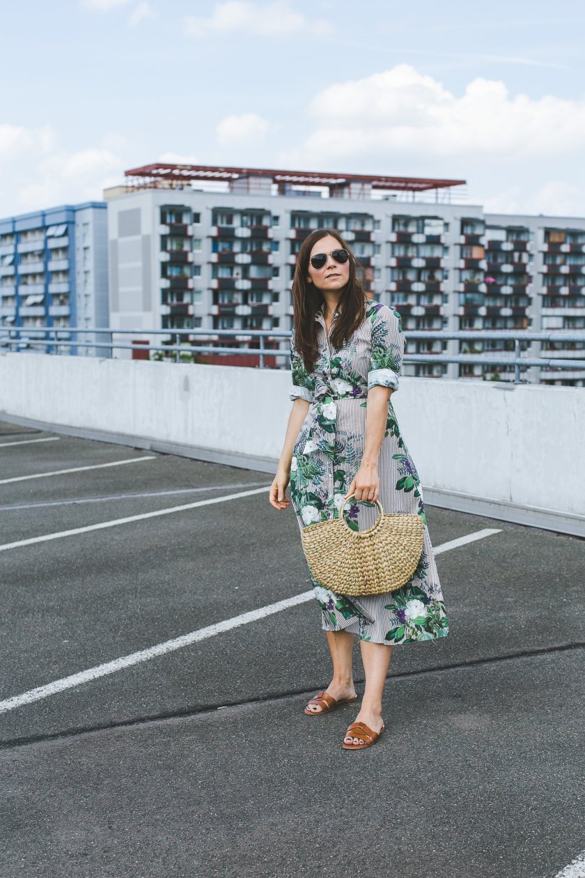 Blusenkleider finde ich total schön und mir gefällt an deinem Kleid ganz besonders die Mischung aus Blumenprint und Streifenmuster. Die Kombination mit der Korbtasche ist zudem einfach perfekt. Insgesamt ein super toller Look für den Sommer, den ich auf jeden Fall auch so anziehen würde.