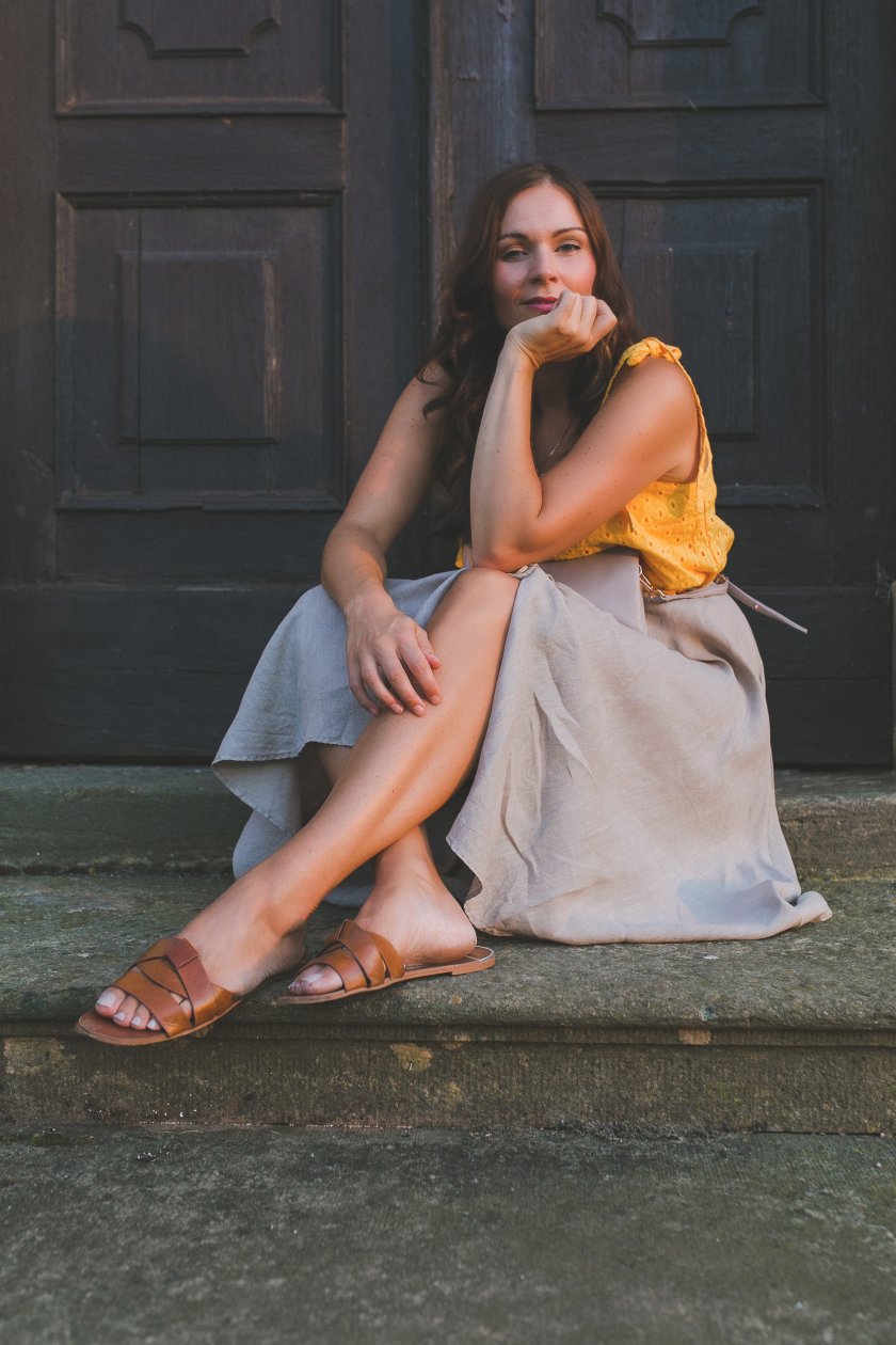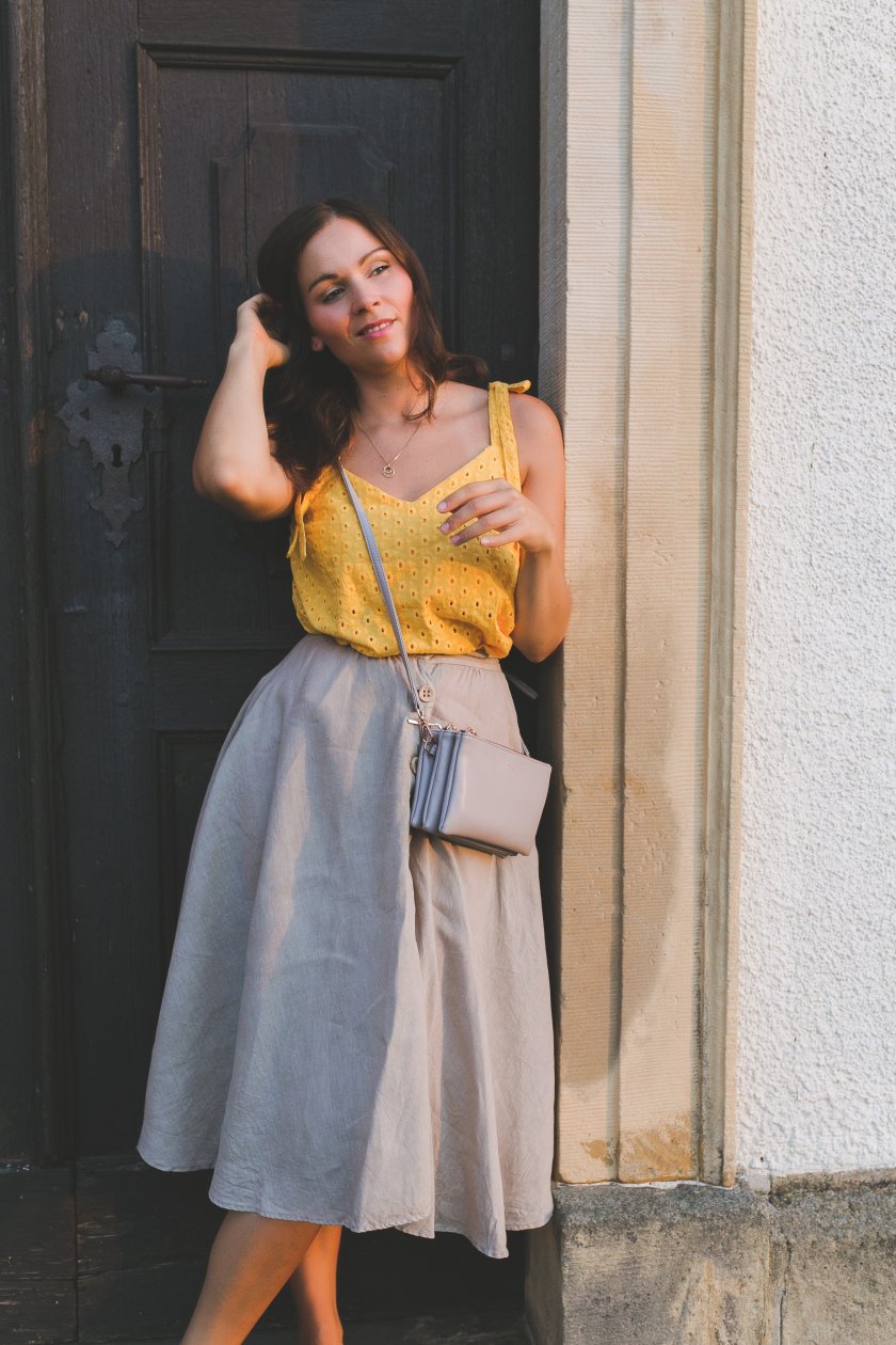 Wie gefällt euch mein Spätsommer Outfit mit Midirock aus Leinen und gelbem Top? Lasst es mich gerne in den Kommentaren wissen! Ich freue mich auf euer Feedback!