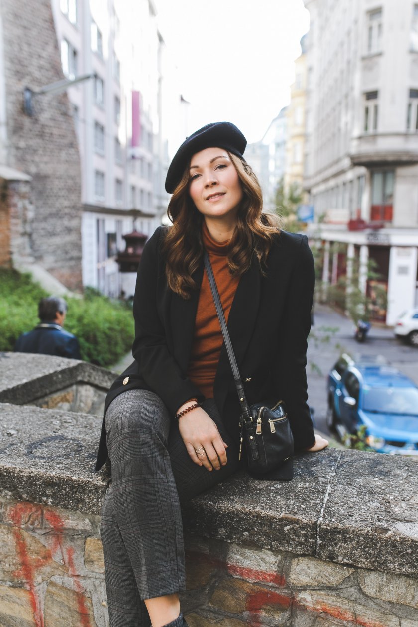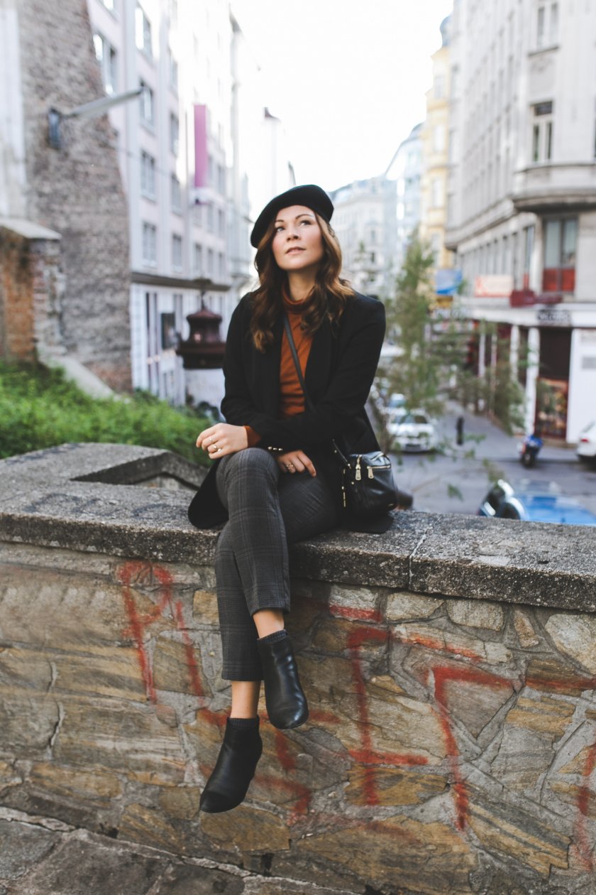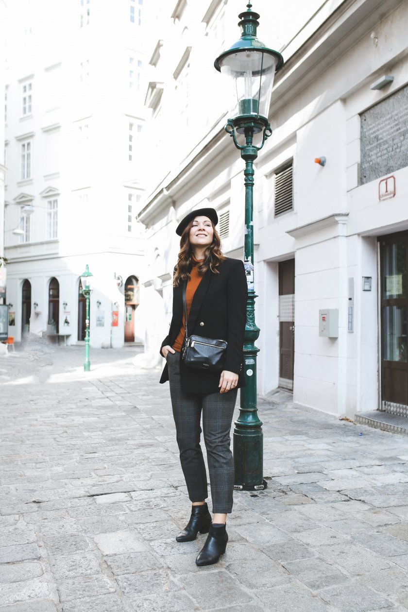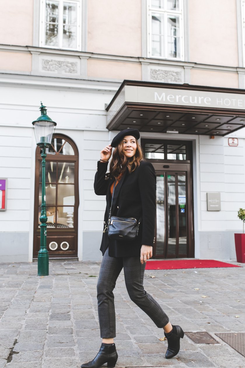 Ich bin zurück aus Wien und habe jede Menge Inspiration mit im Gepäck und natürlich ein neues Outfit. Mein heutiger Look ist vom Parisian Chic inspiriert und gehört zu einem meiner liebsten Everyday-Styles im Herbst. Natürlich darf bei diesem Look das Barett auf dem Kopf nicht fehlen. Ebenso wenig wie der Blazer, der für mich im Herbst ein unverzichtbares Must-have ist. Genau deshalb präsentiere ich euch heute einen Alltagsstyle im Parisian Chic mit schwarzem Barett, klassischen Blazer und eleganten Stiefeletten hier auf dem Outfitblog.