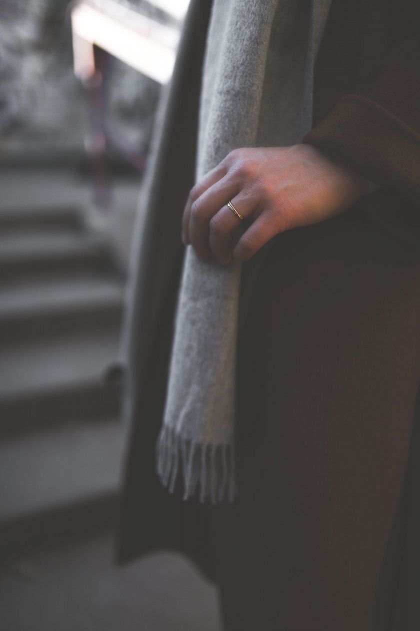 Kombiniert habe ich den Schuh zu einem minimalistisch-zeitlosen Style. Wieder einmal mit von der Partie ist mein brauner Mantel, den ihr bereits aus einigen Outfit Beiträgen kennt. Kombiniert habe ich den schönen Mantel mit einem weißen Rollkragenpullover aus Chasmere. Ich mag das Material im Winter so gerne, weil es trotz seiner Leichtigkeit einfach so warm hält. Für zusätzliche Wärme sorgt mein grauer Schal von COS, den ich mir letzten Winter in Berlin gekauft habe. Dieser Schal ist einfach superweich und rundet den Everyday Style auf eine gekonnte Weise ab.