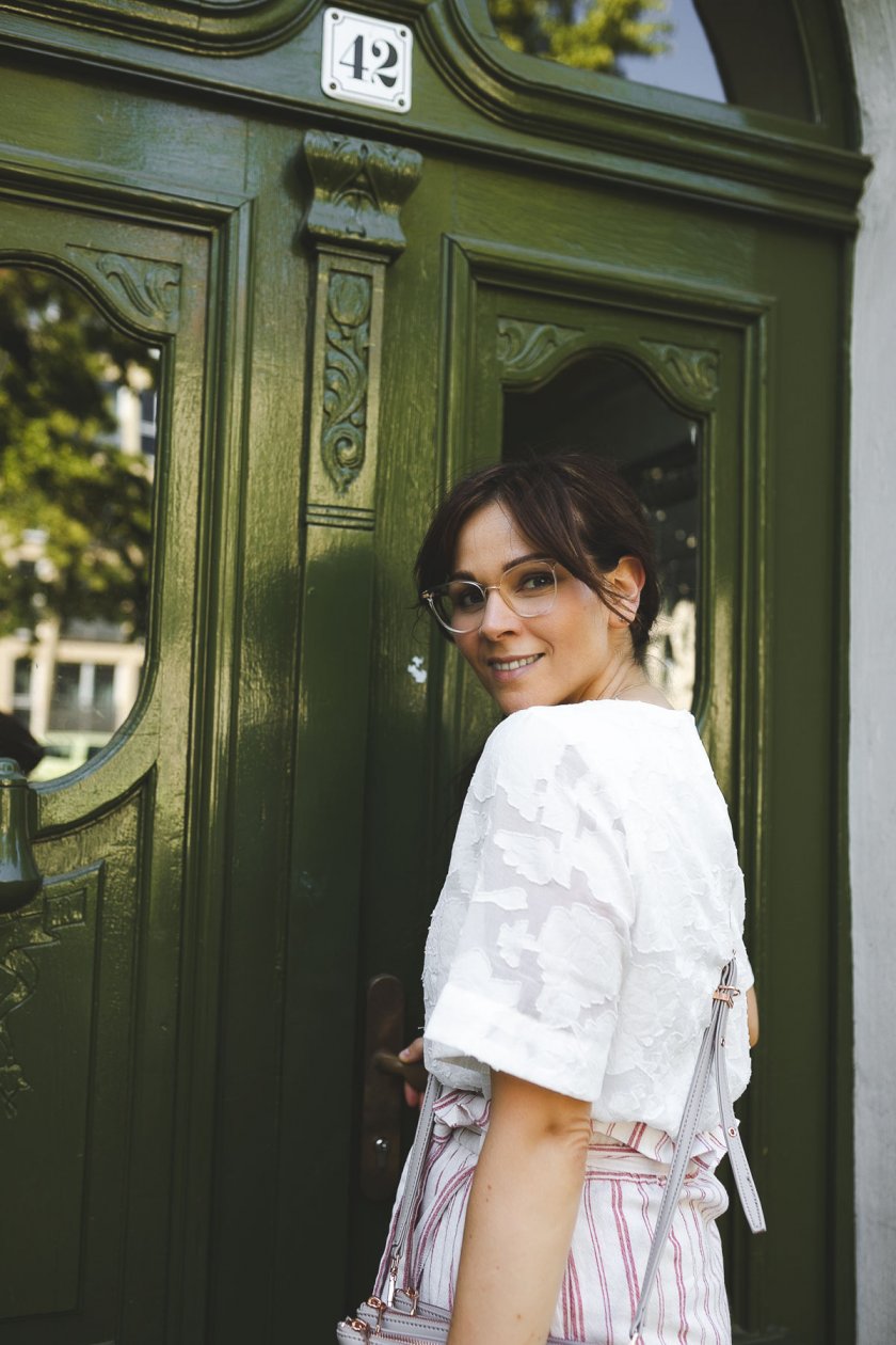 Kombiniert habe ich ihn mit einem weiteren Lieblingsteil aus meinem Kleiderschrank, der weißen Bluse mit transparenten Einsätzen. Die Bluse ist sehr elegant und steht für sich selbst. Bei so einem Statementpiece kann der Rest des Outfits schon einmal sehr schlicht ausfallen. Eins ist sicher, diese Bluse wird mich auch in den Herbst 2019 hinein begleiten und du wirst sie sicherlich sehr bald wieder hier auf dem Fashion Blog sehen.
