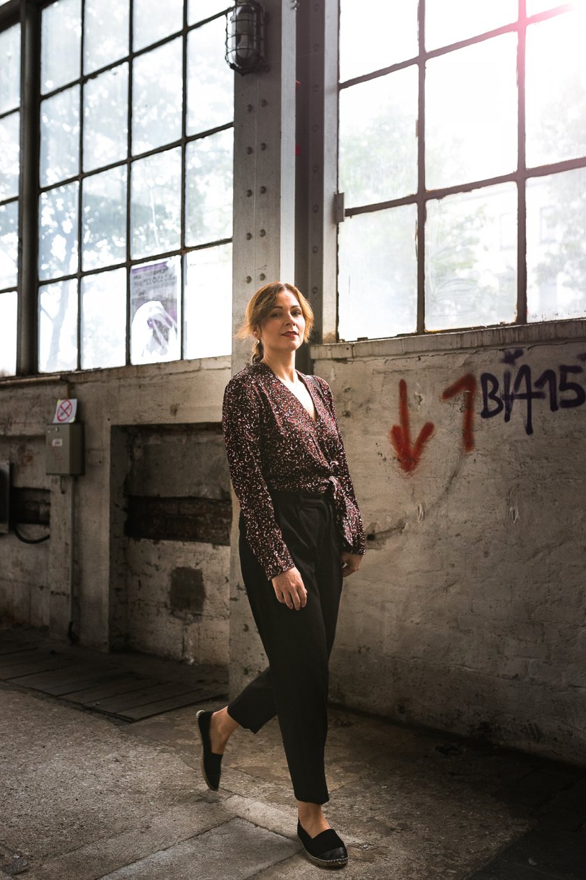 Zu der Bluse trage ich schlichtere Teil aus meinem Kleiderschrank. Wie zum Beispiel die schwarze Bundfaltenhose im lockeren Schnitt und hohem Bund. Aber auch der Wollblazer ist wie für diese Bluse gemacht und greift die Farben der Bluse noch einmal auf. Am Fuß habe ich mich für einen schlichten Schuh entschieden, denn der Fokus soll unbedingt auf der Wickelbluse gelegt werden – ich denke, das ist mir sehr gut gelungen! Was meint ihr?