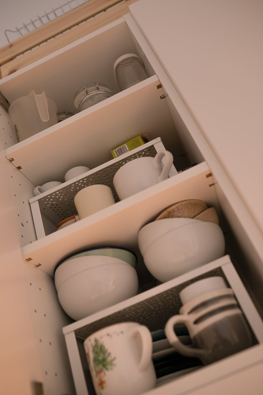 - Kleine Holzkisten: Machen die Küche nicht nur gemütlicher, sondern helfen auch dabei Ordnung zu halten. Ich verstaue in ihnen alles, was ich selten benötige.