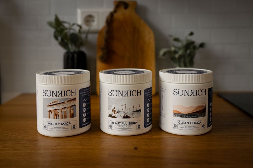 Sunrich setzt auf Mehrkomponentenproteine, die auf Bio-Erbsen, Bio-Reis- und Bio-Hanfproteinen bestehen. Alle Proteine sind vegan, enthalten cleane Inhaltsstoffe, sind nährstoffreich und enthalten Superfoods wie Maca oder Camu-Camu. Außerdem sind alle wichtigen Aminosäuren enthalten. Auf Zucker, Gluten-, Soja und Milchpulver wird verzichtet – so können wirklich alle das Proteinpulver ohne Bedenken genießen.