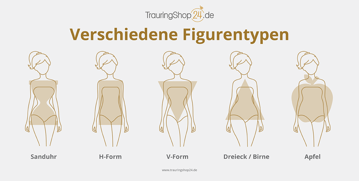 Der weibliche Körperbau kann in 5 Figurentypen eingeteilt werden (©trauringshop24.de).