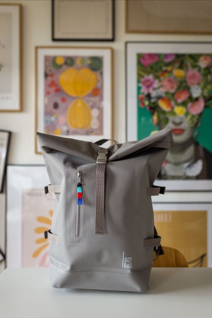 Das Material ist rau und eher statisch. Der Backpack von GOT BAG hat keinen Reißverschluss, mit dem das Hauptfach verschlossen werden kann. Der Rucksack wird umgeschlagen und mit einem flexiblen Klick-Verschluss geschlossen.