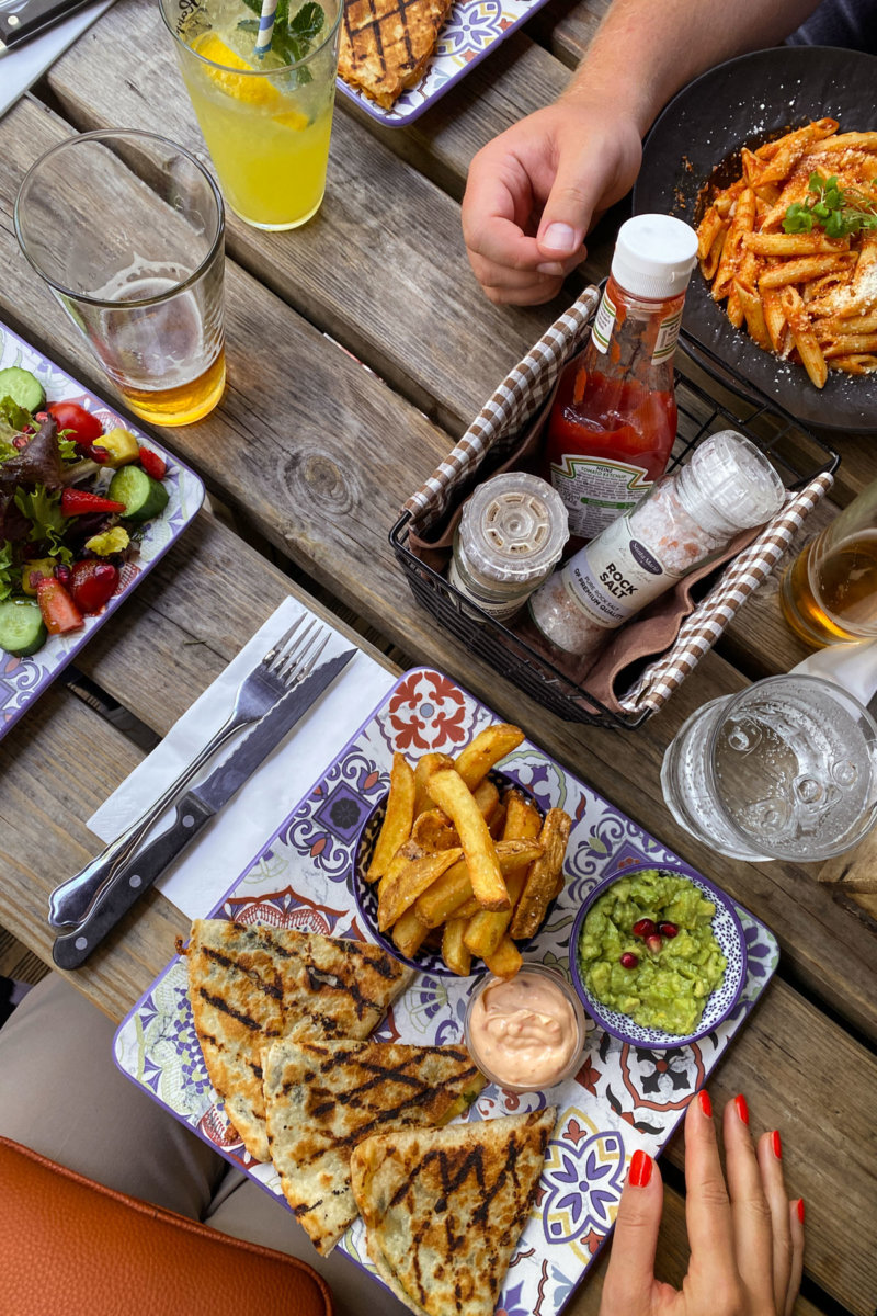 In der Gegend befindet sich auch das majestätische Schloss Amalienborg, die offizielle Residenz der dänischen Königsfamilie. Zusätzlich zu seiner historischen Bedeutung ist Indre By ein beliebtes Ziel zum Einkaufen, Essen und für kulturelle Erlebnisse. Strøget, eine der längsten Fußgängerzonen Europas, verläuft durch das Herz von Indre By und ist gesäumt von einer Reihe von Geschäften, Cafés und Restaurants. Und in genau so einem kleinen Café bin ich gelandet. Es heißt Café G. und bietet eine Vielzahl von leckeren Gerichten. Die Küche ist europäisch skandinavisch angehaucht und hat auch einige vegetarische Speisen zu bieten. Ich habe im Außenbereich Platz genommen und konnte so das Treiben in malerischen Viertel genießen.