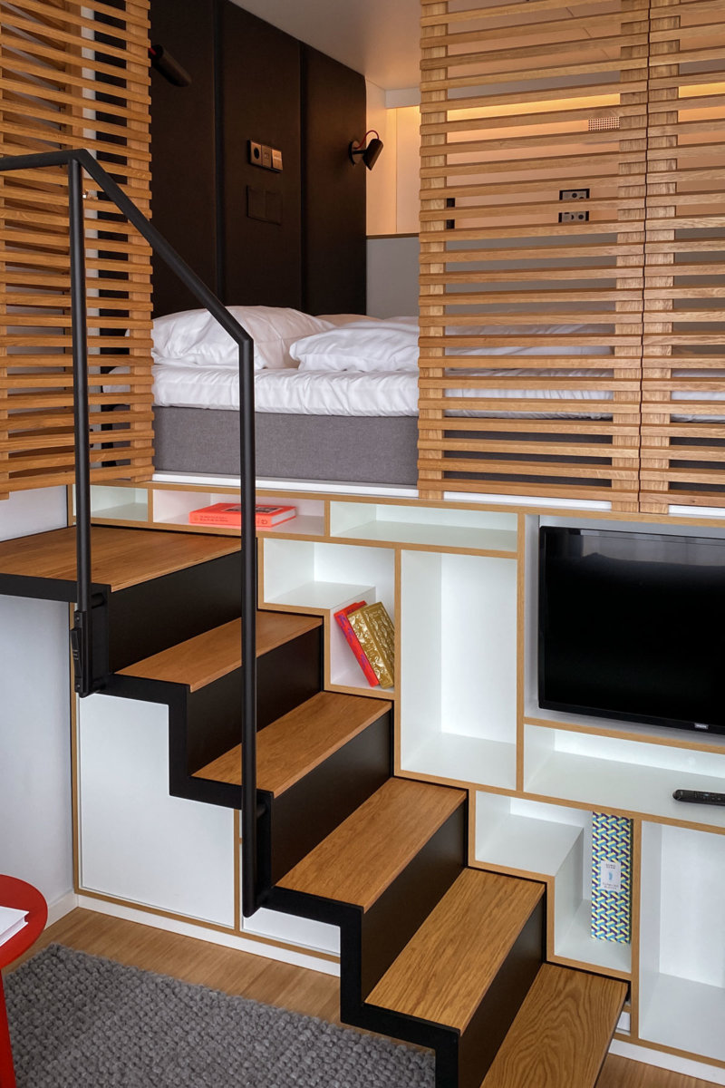 Ich habe mir während meines Aufenthalts ein Zoku Loft XL gemietet. Dieses hat eine voll integrierte Küche. Jede Menge Stau-Möglichkeiten und das Highlight ist die versteckte Treppe, die je nach Bedarf ausgefahren werden kann, um in den Schlafbereich zu gelangen. Ich liebe Schlafplätze, die eine gewisse Gemütlichkeit ausstrahlen, und dieser traf zu 100 Prozent meinen Geschmack. In unmittelbarer Nähe gab es zwei Einkaufsmöglichkeiten und auch die S-Bahn-Haltestelle war nur 100 Meter entfernt.